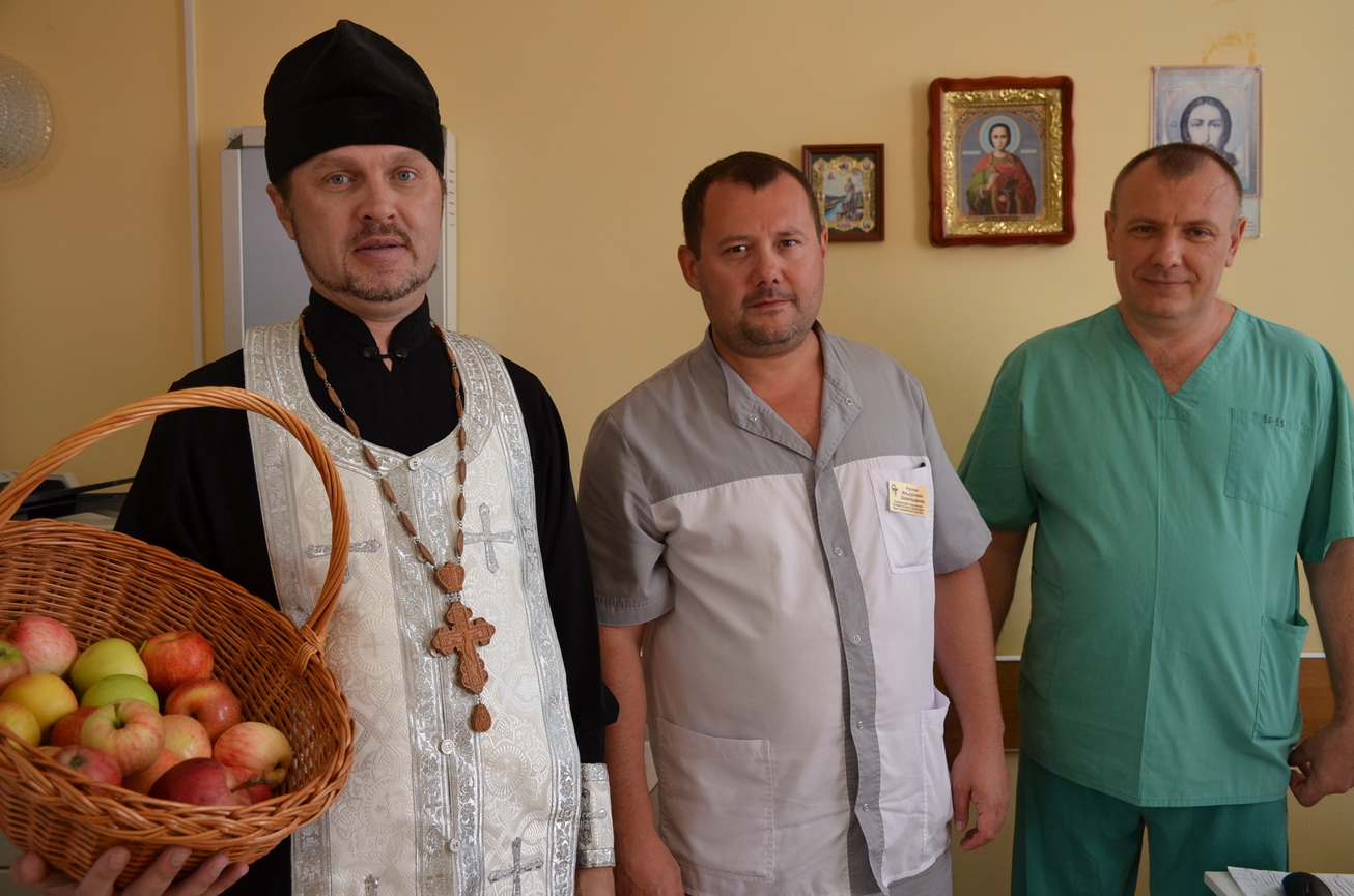 Сегодня, в праздник Преображения Господня, после праздничной Божественной литургии и освящения фруктов и овощей, настоятель храма святого благоверного князя Александра Невского города Темрюка протоиерей Виталий Колмык совместно с сестрами-милосердия прихода посетили центральную районную больницу города. Они посетили приемный покой и отделения больницы, поздравили с праздником Преображения Господня медперсонал и пациентов. Во время поздравления сотрудникам и пациентам больницы желали терпения и здоровья, раздавали буклеты, содержащие информацию о празднике и освященные яблоки, сообщает пресс-служба храма святого благоверного князя Александра Невского города Темрюка.