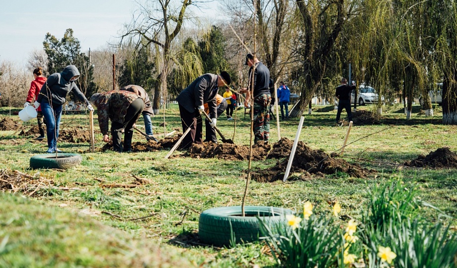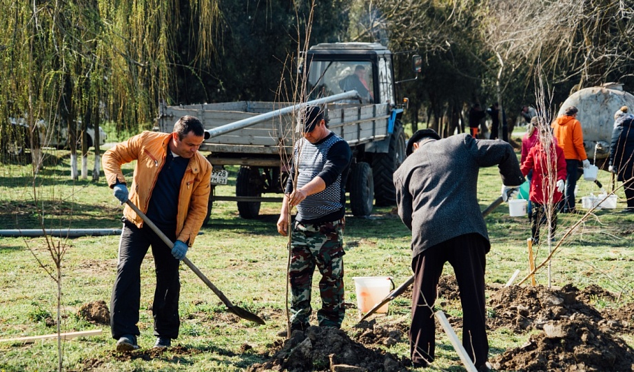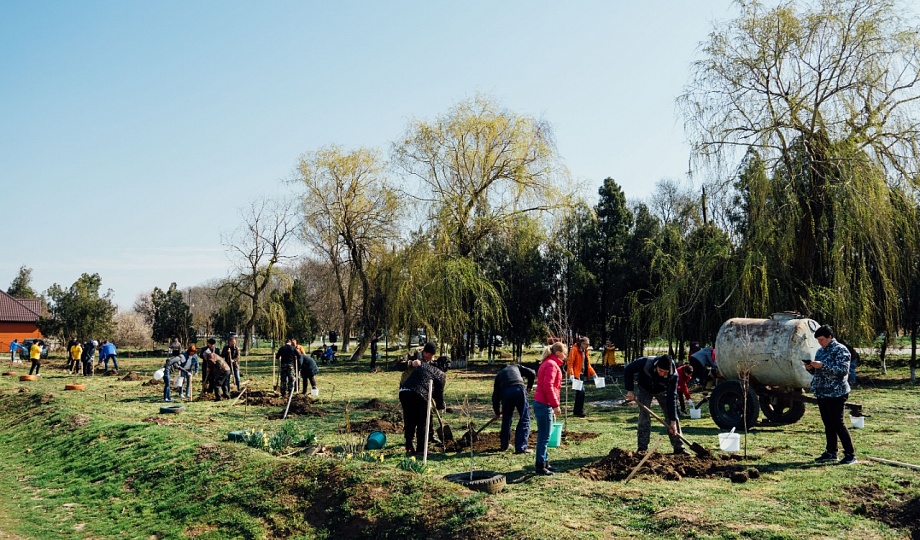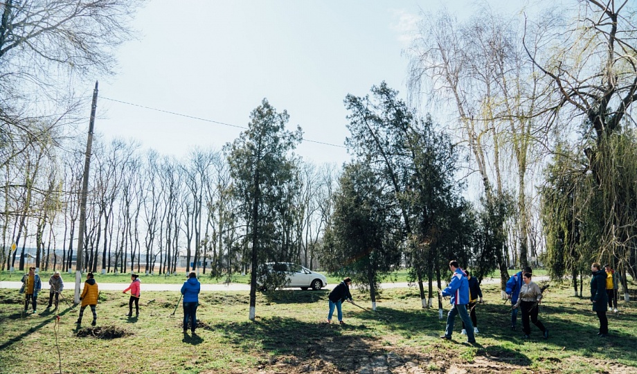 В станице Курчанской в сквере «75 лет Великой Победы» представители администрации и Совета ветеранов, сотрудники культуры и ЖКХ высадили 75 берез и лип.