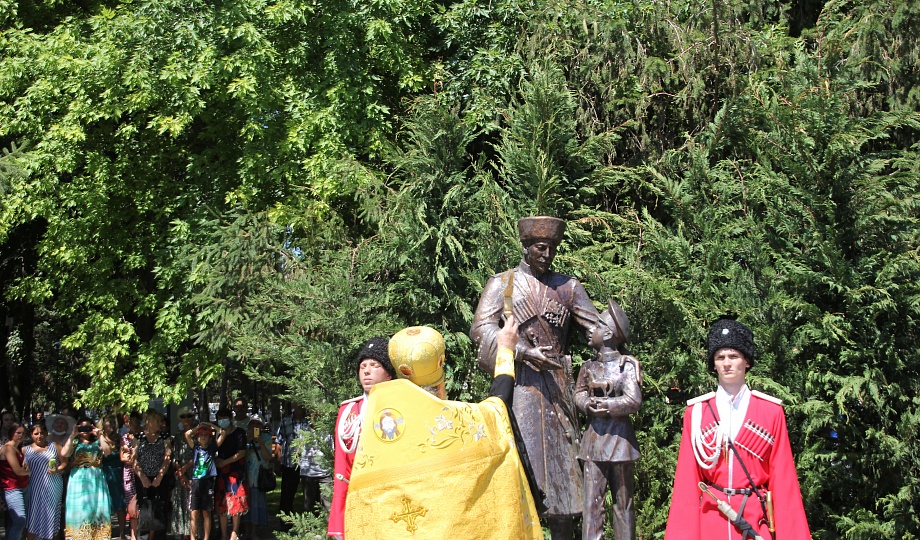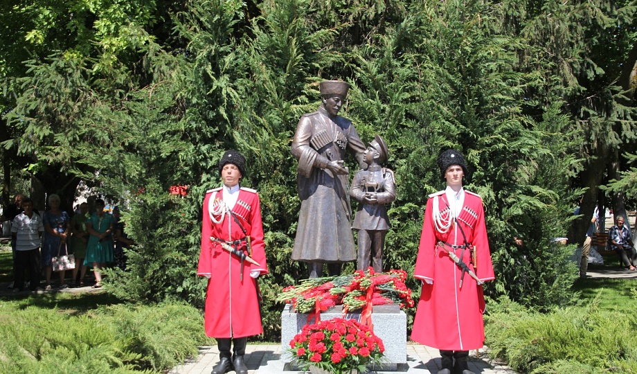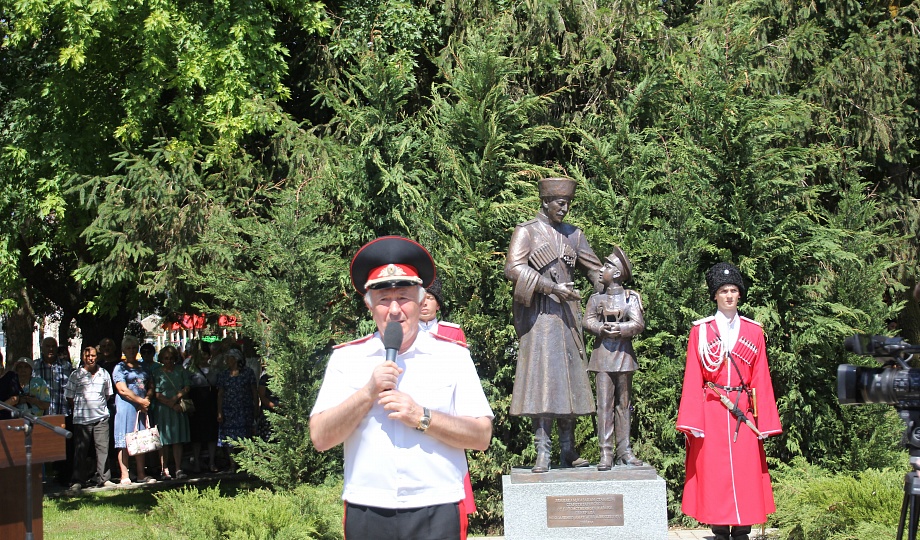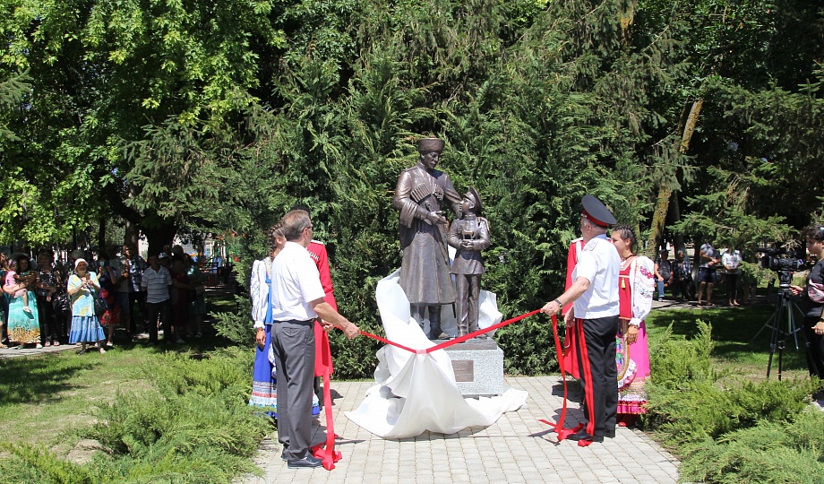 В станице Старотитаровской состоялось торжественное открытие памятника «Преемственность поколений». Бронзовая композиция установлена на территории станичного парка им. В.И. Головченко.