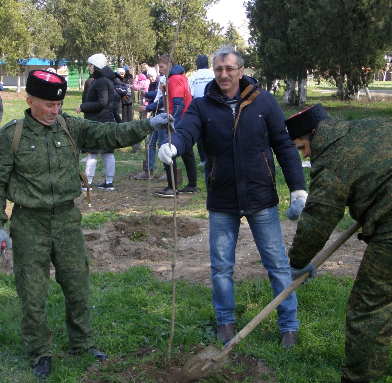 В станице Вышестеблиевской в рамках акции «Сад Памяти» высадили более 160 деревьев