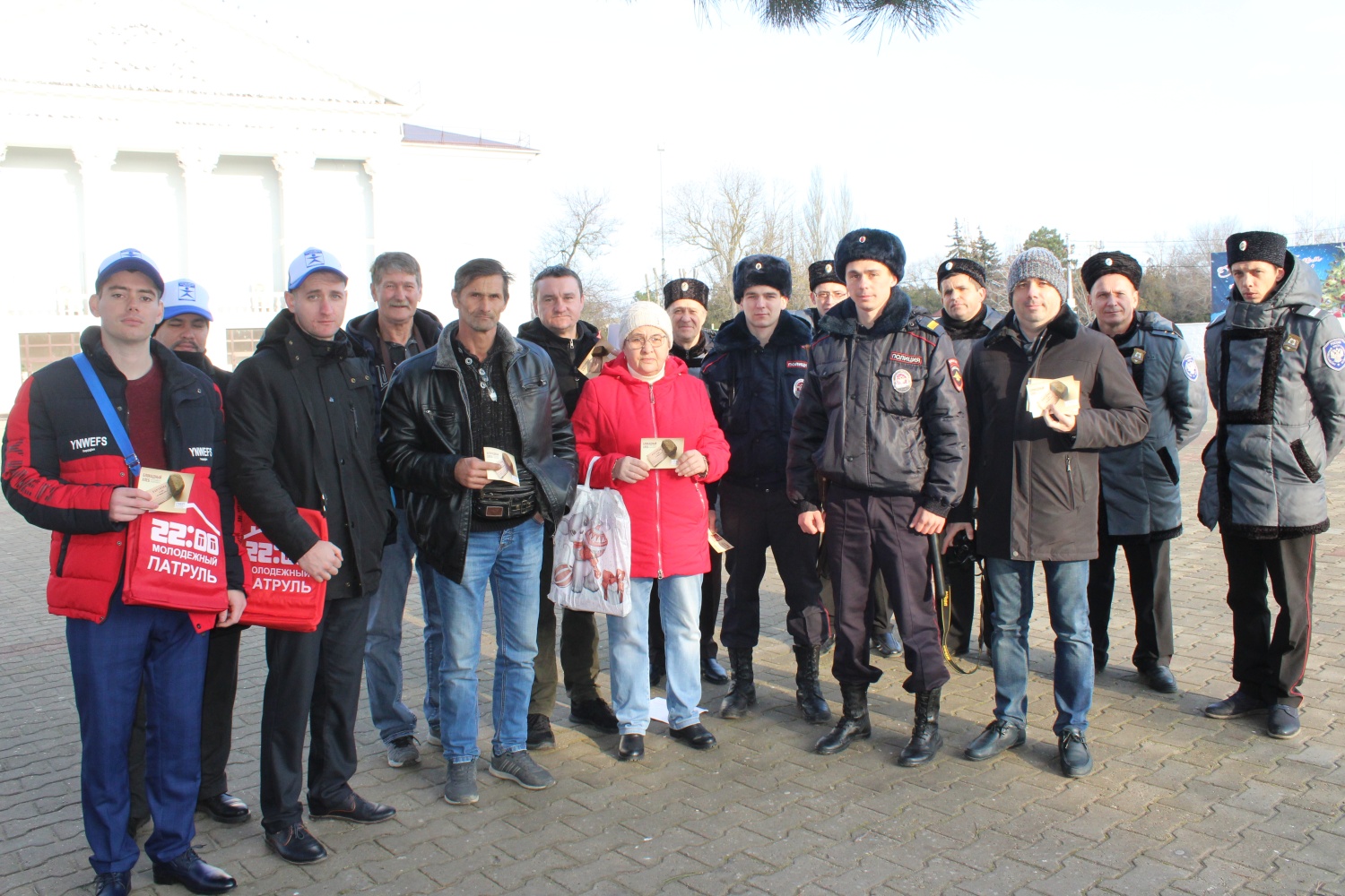Сотрудники дорожно-патрульной службы и патрульно-постовой службы полиции Отдела МВД России по Темрюкскому району совместно с представителем Общественного совета Ростиславом Гаврилюком и членами общественной организации «Молодежный патруль» присоединились ко всероссийской акции «Блокадный хлеб».