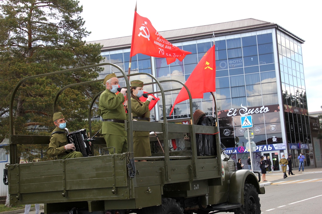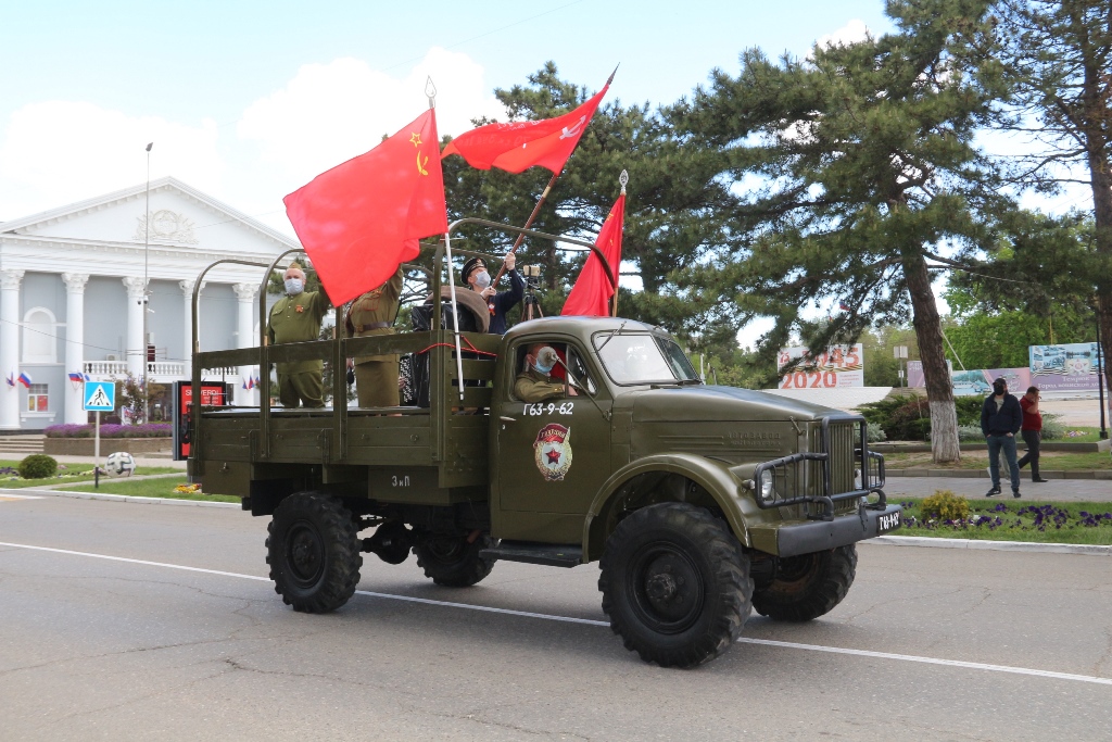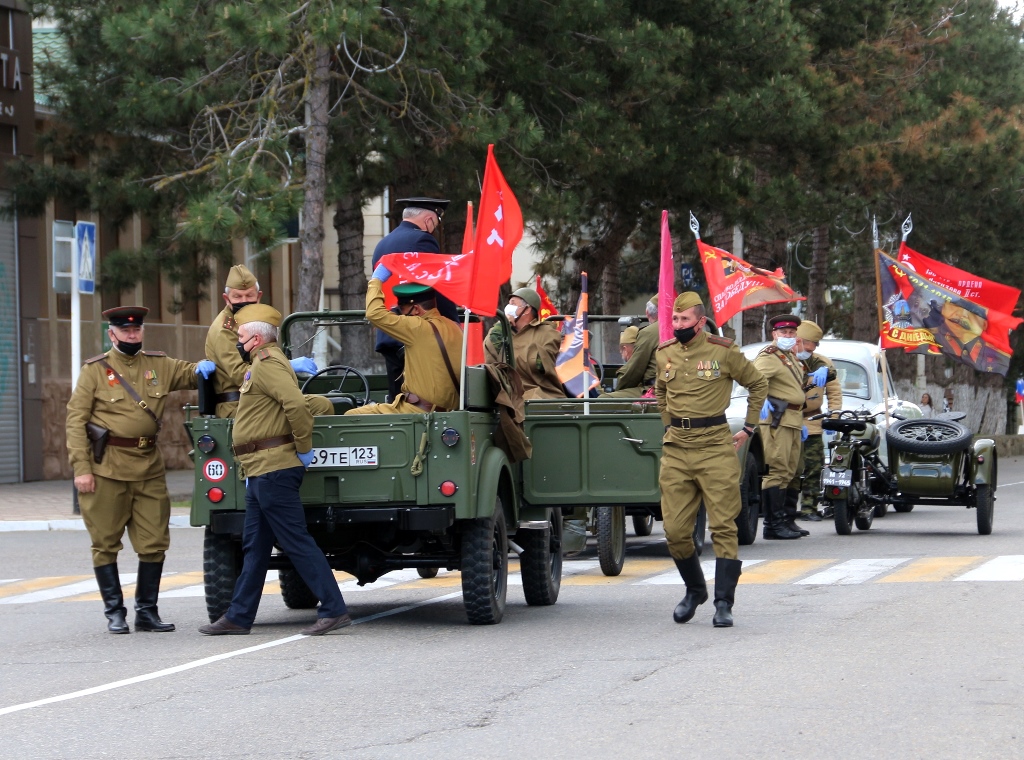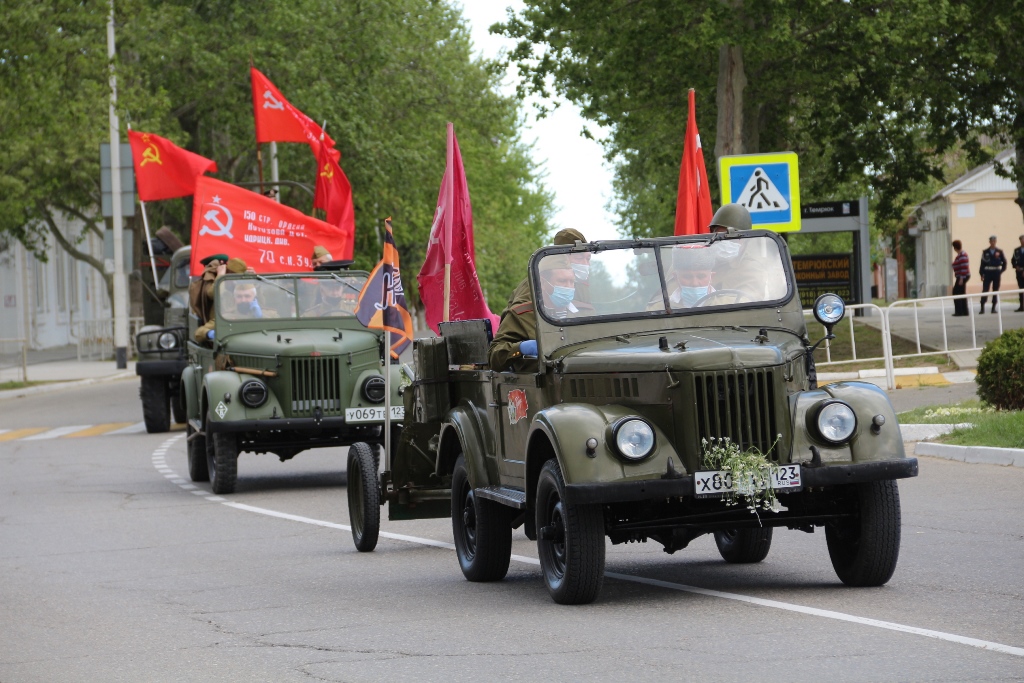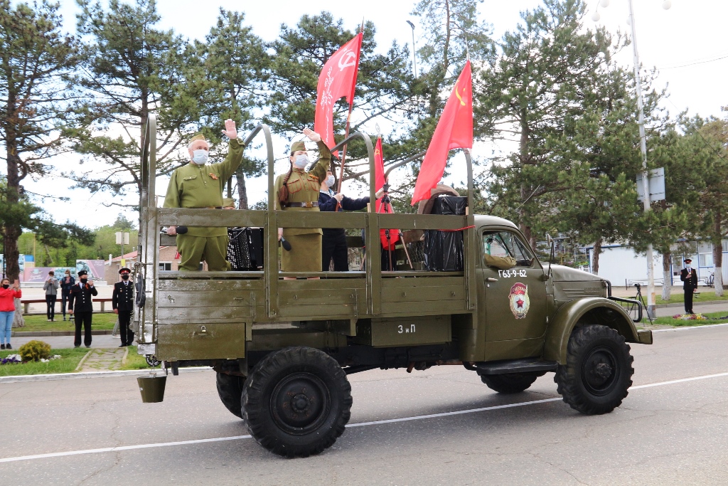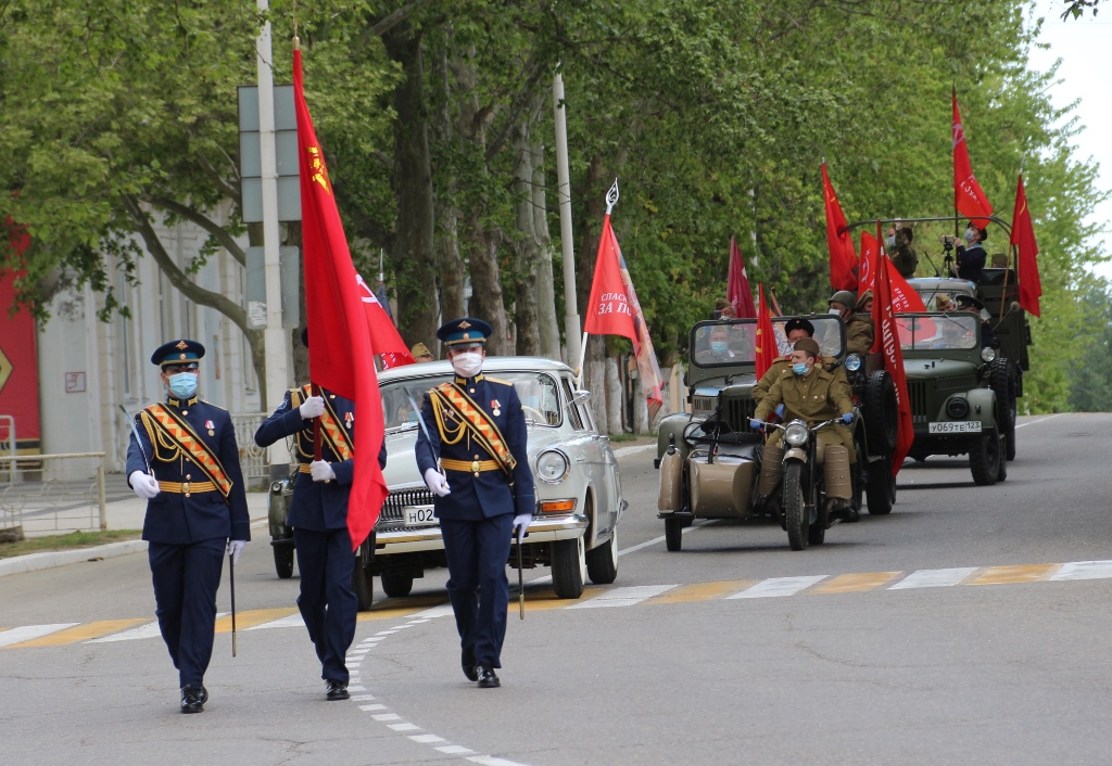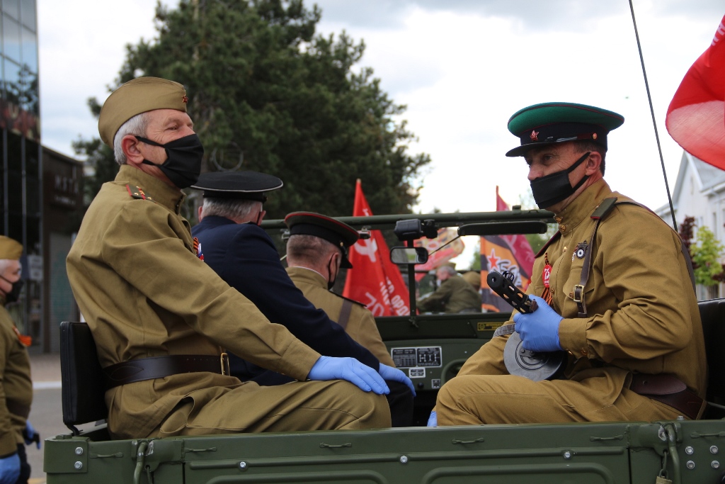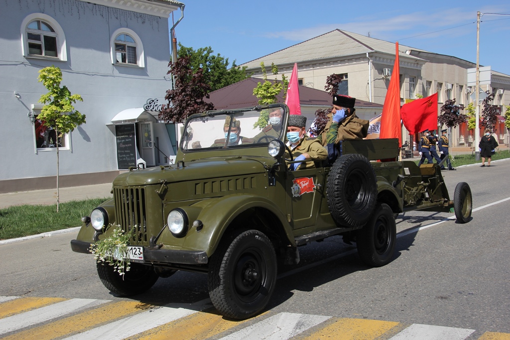 Затем перед участником войны состоялся парад. Впереди шла знаменная группа, следом за ней пять единиц техники - армейский автомобиль ГАЗ-63, ГАЗ-69, ГАЗ-21 «Волга», 45-мм противотанковая пушка, мотоциклы М-52 и М-53.