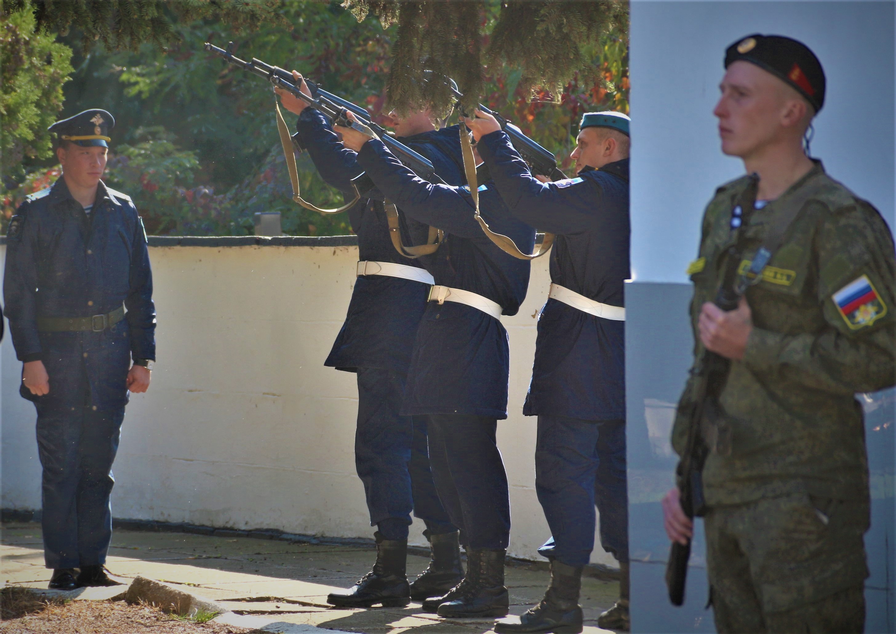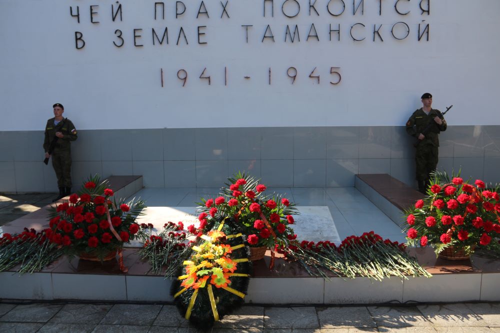 Память освободителей Таманского полуострова, Кубани и Северного Кавказа почтили минутой молчания и оружейным салютом. К Вечному огню возложили венки и цветы.