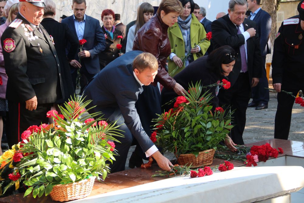 - Именно здесь, пересекая весь Таманский полуостров, тянулась укрепленная полоса фашистской обороны - «Голубая линия». 16 сентября 1943 года она была прорвана советскими войсками. Нельзя забывать и о самоотверженных партизанах и подпольщиках, которые смело провели множество боевых и диверсионных операций, - подчеркнул в своем выступлении Иван Костюк. - Битва за Кавказ вошла в историю, как одно из самых крупнейших сражений Великой Отечественной войны, во время которой погибло около 9 тысяч советских воинов. Особые слова благодарности за мужество и героизм мы говорим ветеранам Великой Отечественной войны! Спасибо вам, за Победу, за мир на нашей земле!