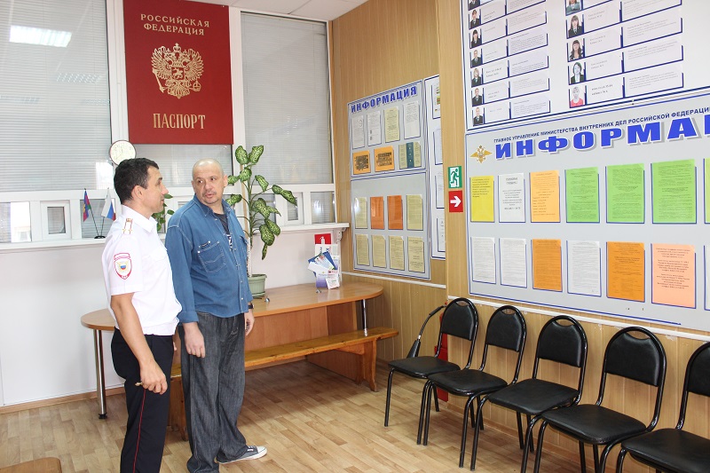 Общественник ознакомился с алгоритмом оказания государственных услуг, которые предоставляются ОВМ, актуальностью и доступностью необходимой информации для граждан, также обратил внимание на наличие кнопки вызова сотрудников для людей с ограниченными возможностями
