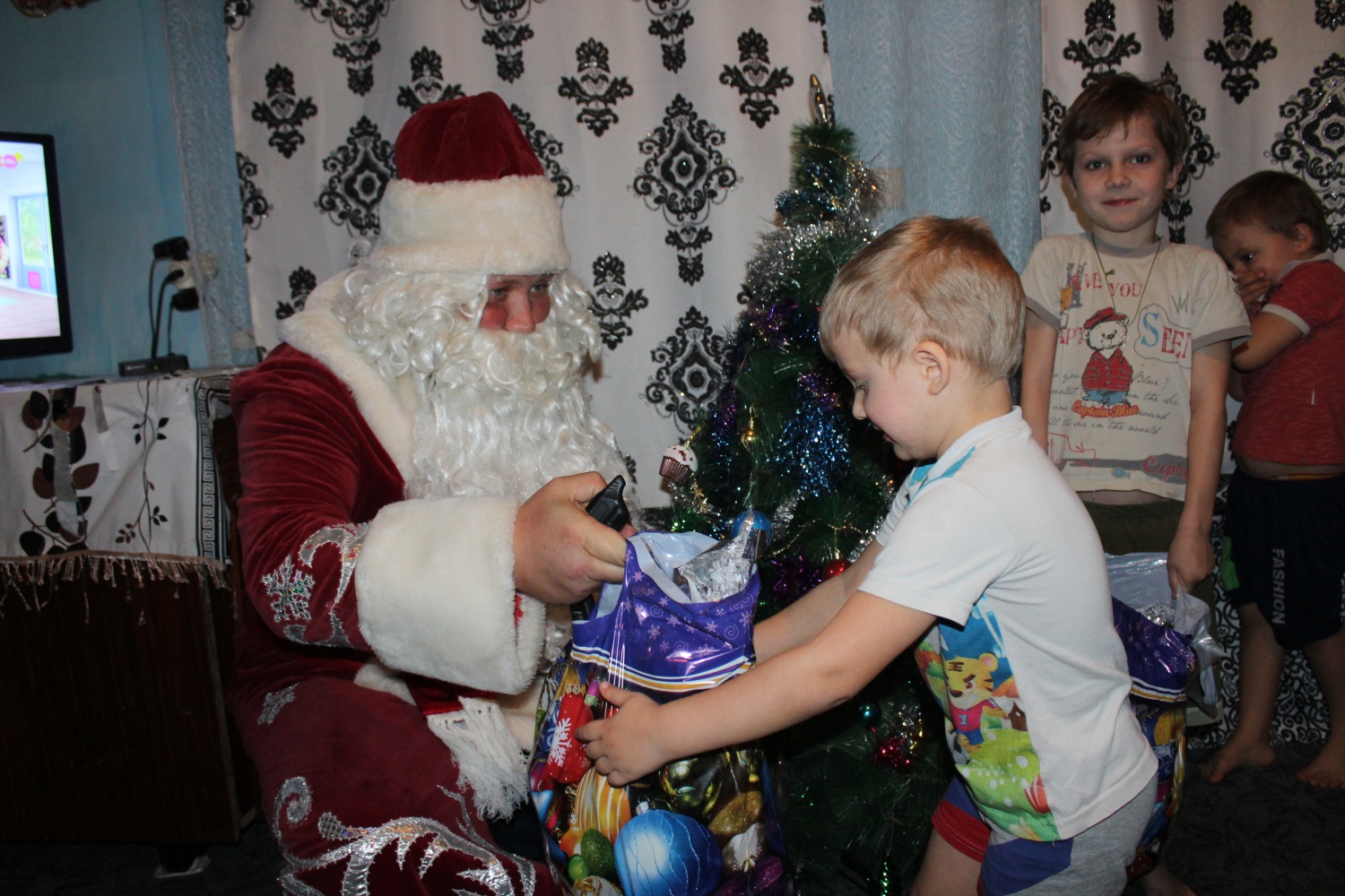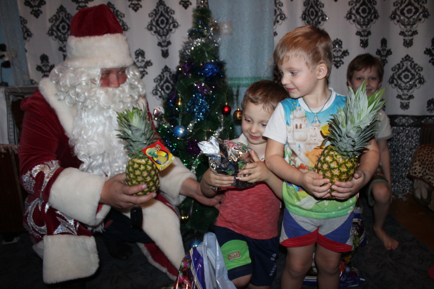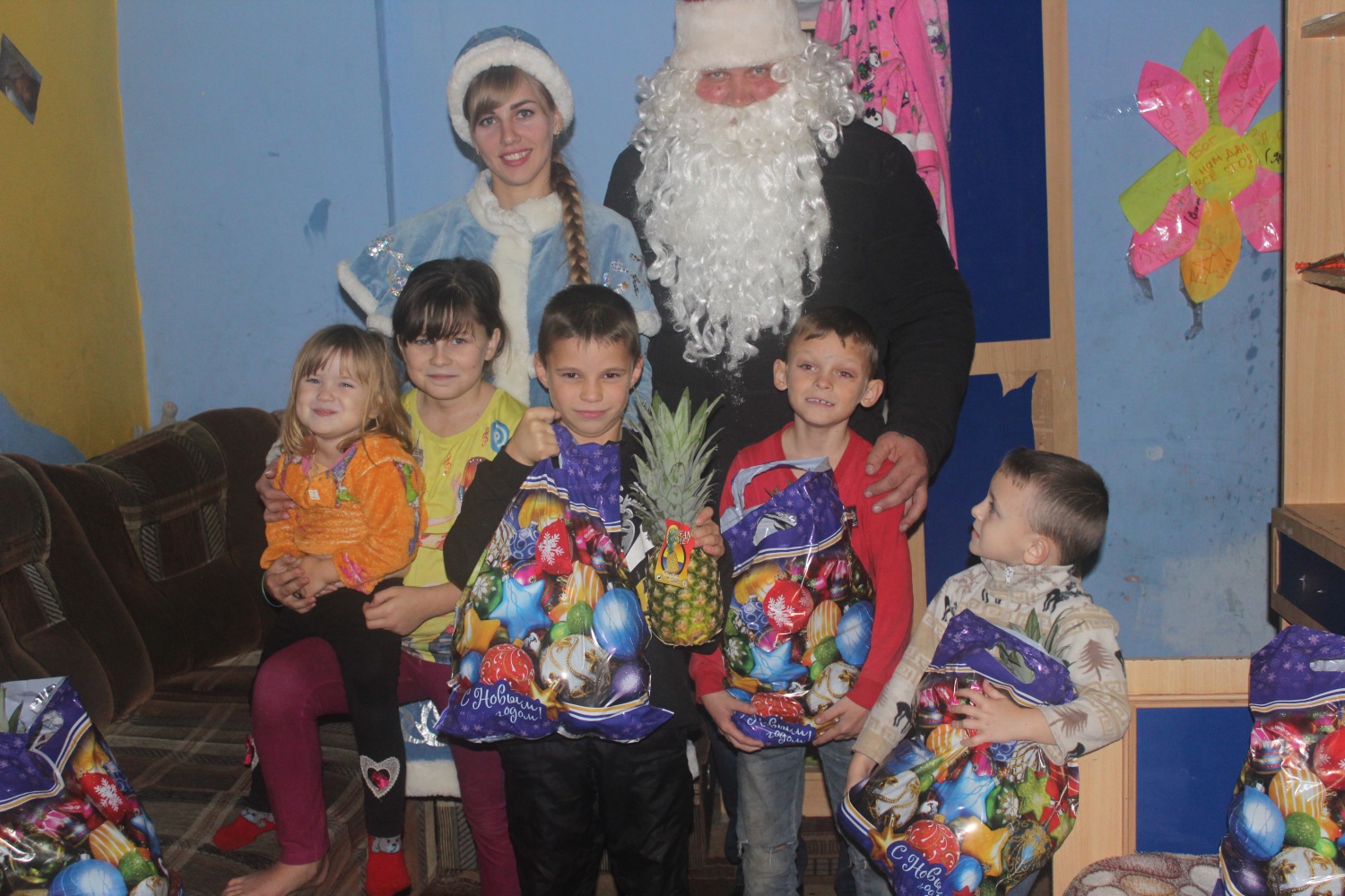 Визит сотрудников полиции и общественника был очень неожиданным и приятным для юных жителей. Ребятишки с радостью рассказывали гостям новогодние стихи, пели песни и отгадывали загадки. Полицейские Дед Мороз и Снегурочка поздравили ребят с Новым годом, подарили сладкие подарки, фрукты и пожелали им исполнения всего, о чём мечтают.