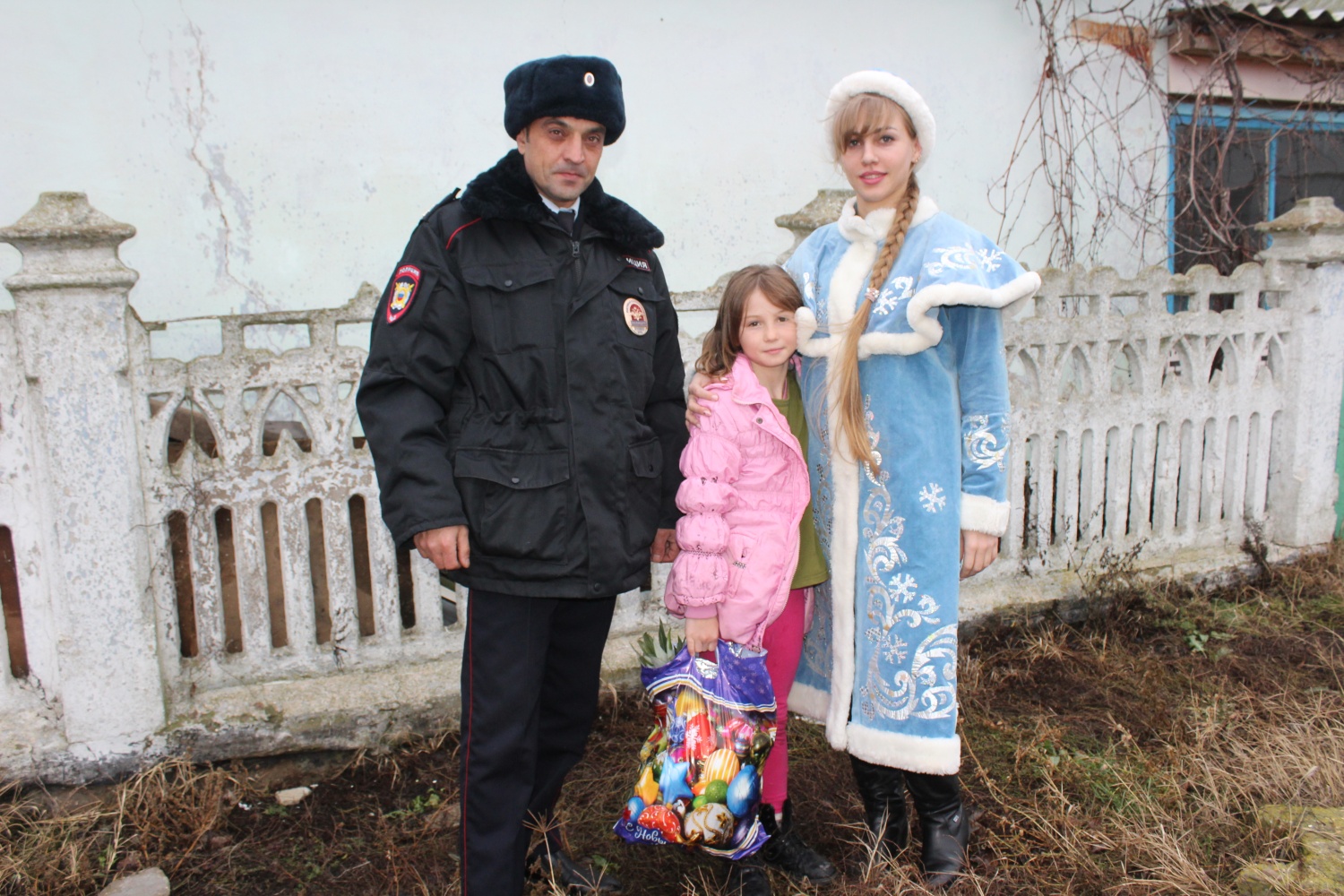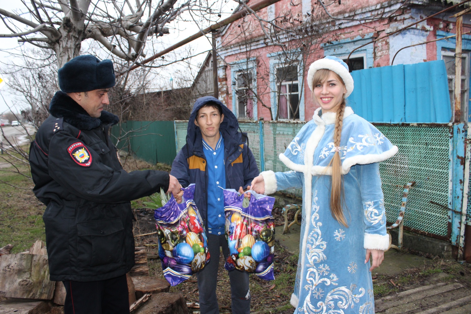 Руководители Отдела МВД России по Темрюкскому району совместно с депутатом Темрюкского городского поселения Сергеем Брегедой продолжили объезд многодетных семей, которые оказались в трудном материальном положении. Роль Деда Мороза взял на себя инспектор ДПС, а снегурочки – инспектор отдела по делам несовершеннолетних.