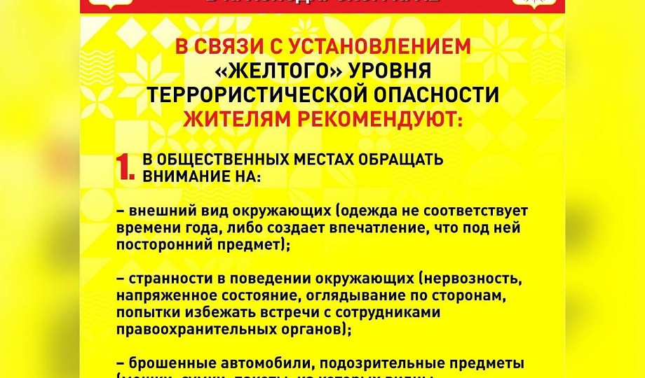 В Темрюкском районе действует «желтый» уровень террористической опасности