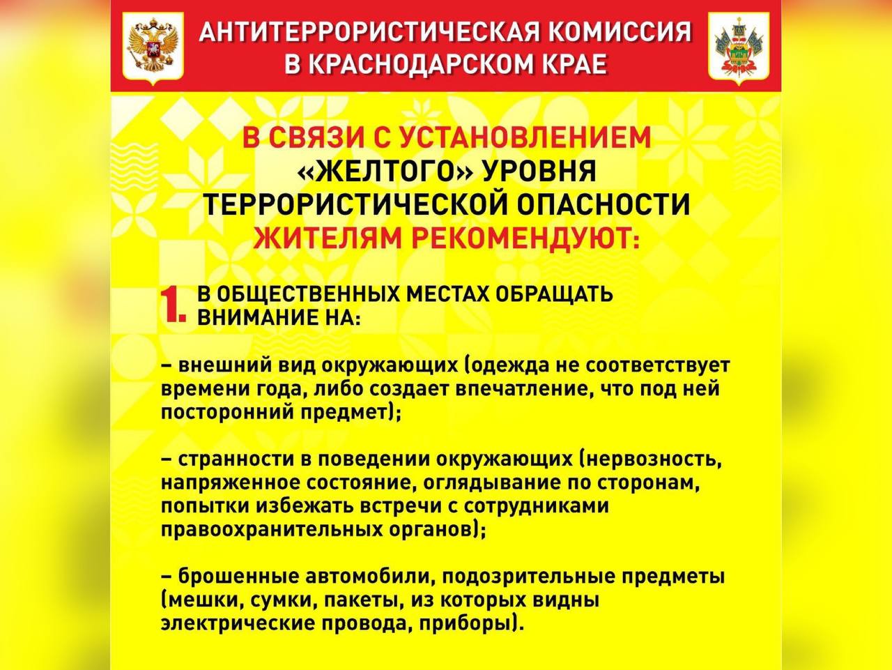 В Темрюкском районе действует «желтый» уровень террористической опасности