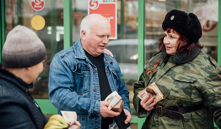 Сегодня в станице Курчанской представители органов ТОС раздают жителям и гостям станицы листовки с информацией о блокаде Ленинграда и главный символ акции - 125 граммов чёрного хлеба.