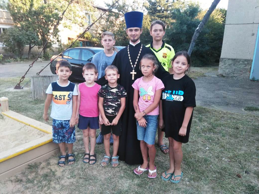 В рамках соглашения о сотрудничестве с городским молодежным досуговым центром состоялась встреча штатного священнослужителя храма святого благоверного князя Александра Невского города Темрюка иерея Иоанна Олексик с подростками, посещающими летнюю молодежную площадку по месту жительства, расположенную на территории школы-интернат VIII вида.