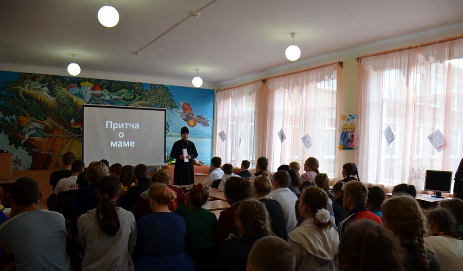 Священник рассказал участникам мероприятия о возвышенной роли матери в жизни ребёнка, о важности соблюдения заповеди о почитании родителей и о православном обычае особо почитать Пресвятую Богородицу, Мать Господа Иисуса Христа, которая является примером жертвенной любви, кротости, смирения, трудолюбия, т.е. всех тех качеств, которые должны быть присущи каждой девушке, женщине, матери. В ходе беседы протоиерей Виталий задавал присутствующим вопросы о том, кто такая Богородица; что означает слово «почитать» и как понять словосочетание «почитать родителей»; кто молится о вашем здоровье и счастье, кто желает вам всегда добра; а так же попросил детей сказать вслух ласковое слово о своей маме.