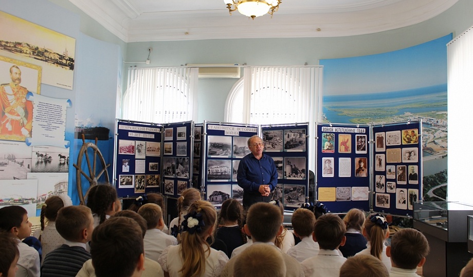 Григорий Вячеславович познакомил детей с иллюстративной выставкой «Становится историей война», рассказал о боях, которые шли при освобождении Темрюка, о периоде оккупации города. Большой интерес у ребят вызвало оружие, с которым воевали солдаты Великой Отечественной войны. Познакомились школьники с обмундированием солдата - гимнастёркой, шинелью, пилоткой, каской и т. д. А самое главное, для любого маленького школьника, что все это можно было потрогать и примерить, сообщает заведующая Центральной городской детской библиотекой им. О. Кошевого Дарья Чечина.