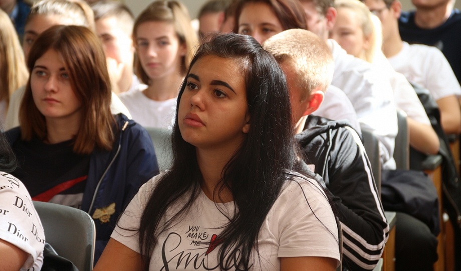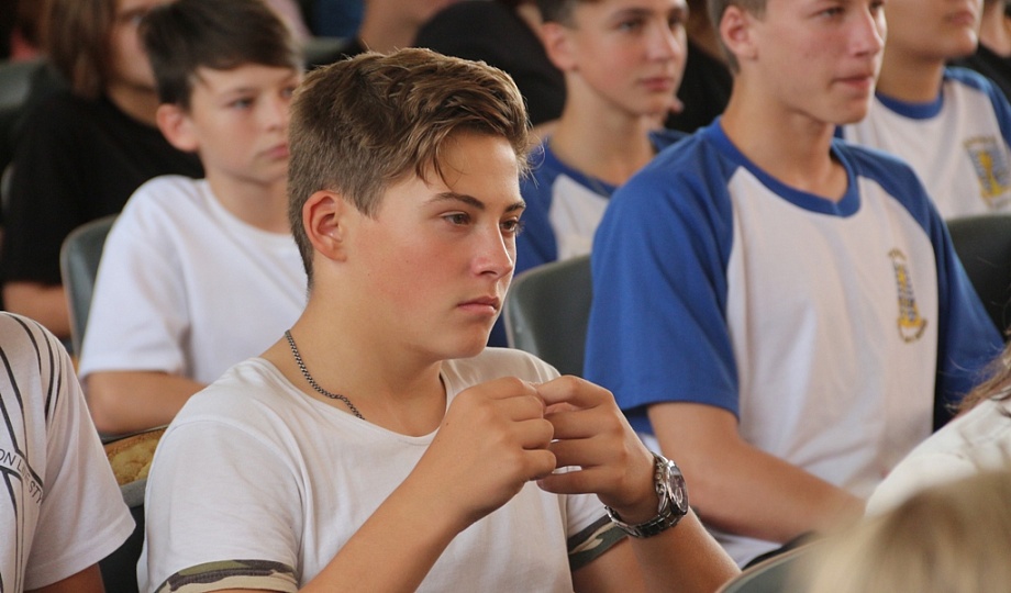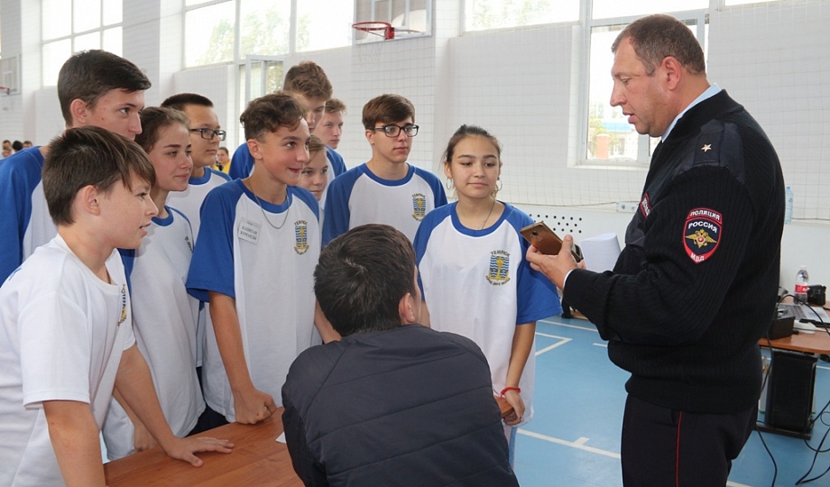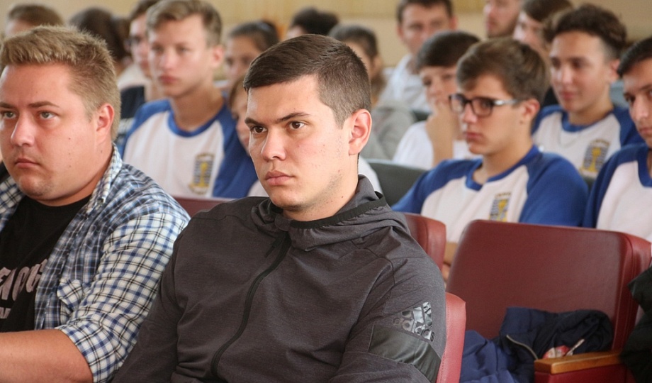 В актовом зале собрались учащиеся школ № 1, № 2, № 3, № 13, № 15, студенты юридического техникума, МГУТУ им. К. Г. Разумовского и Анапского индустриального техникума.