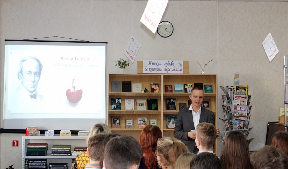 Испокон веков женщина, ее очарование, загадочность, самопожертвование были предметом восхищения, преклонения и вдохновения мужчин. Сколько великолепных стихов посвящались и продолжают посвящаться прекрасным дамам! Во второй части мероприятия юноши 9 «Б» класса читали стихи, написанные известными поэтами прошлого: Федором Тютчевым, Константином Бальмонтом, Евгением Долматовским, Булатом Окуджавой.