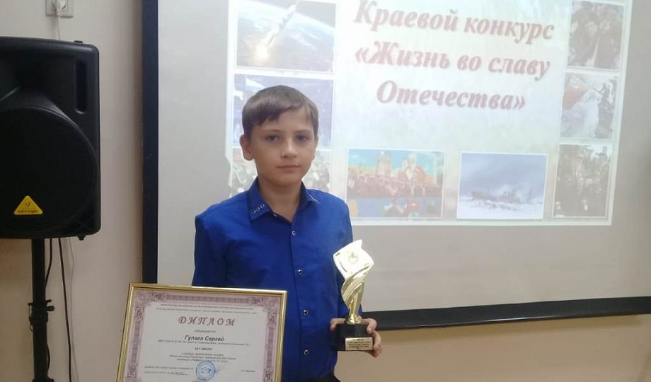 12 декабря 2019 г. в г. Краснодаре был награжден дипломом 1 степени Гулага Сергей, обучающийся МБУ ДО «Центр детско-юношеского туризма и экскурсий». Он принял участие в краевом краеведческом конкурсе «Жизнь во славу Отечества», посвященного Дню Героев.