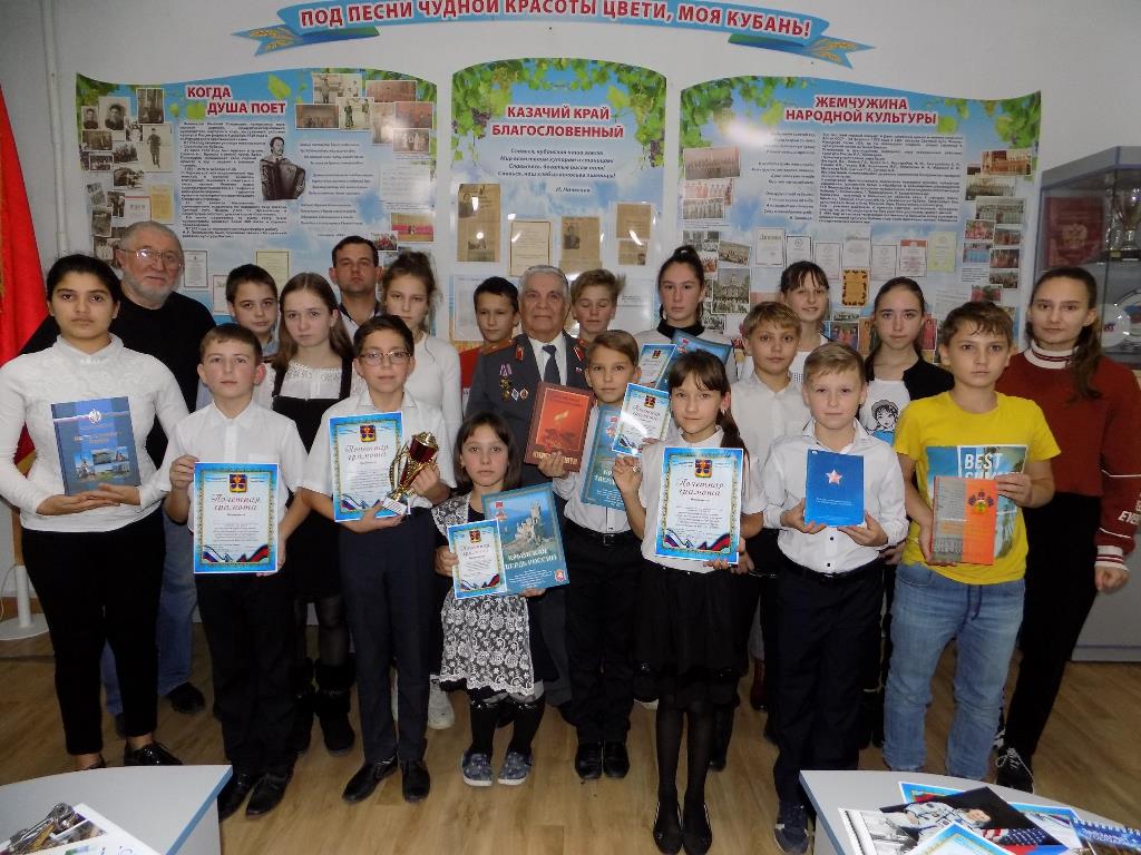 По итогам акции самому активному юному музееведу Абдулмеджиду Агасиеву вручен кубок и почетная грамота. На втором месте по итогам конкурсной программы Егор Сытник, на 3 м Карина Антипина. Все ребята шестиклассники. Кубок победителю вручил депутат Совета Курчанского сельского поселения Е.Сочивко.